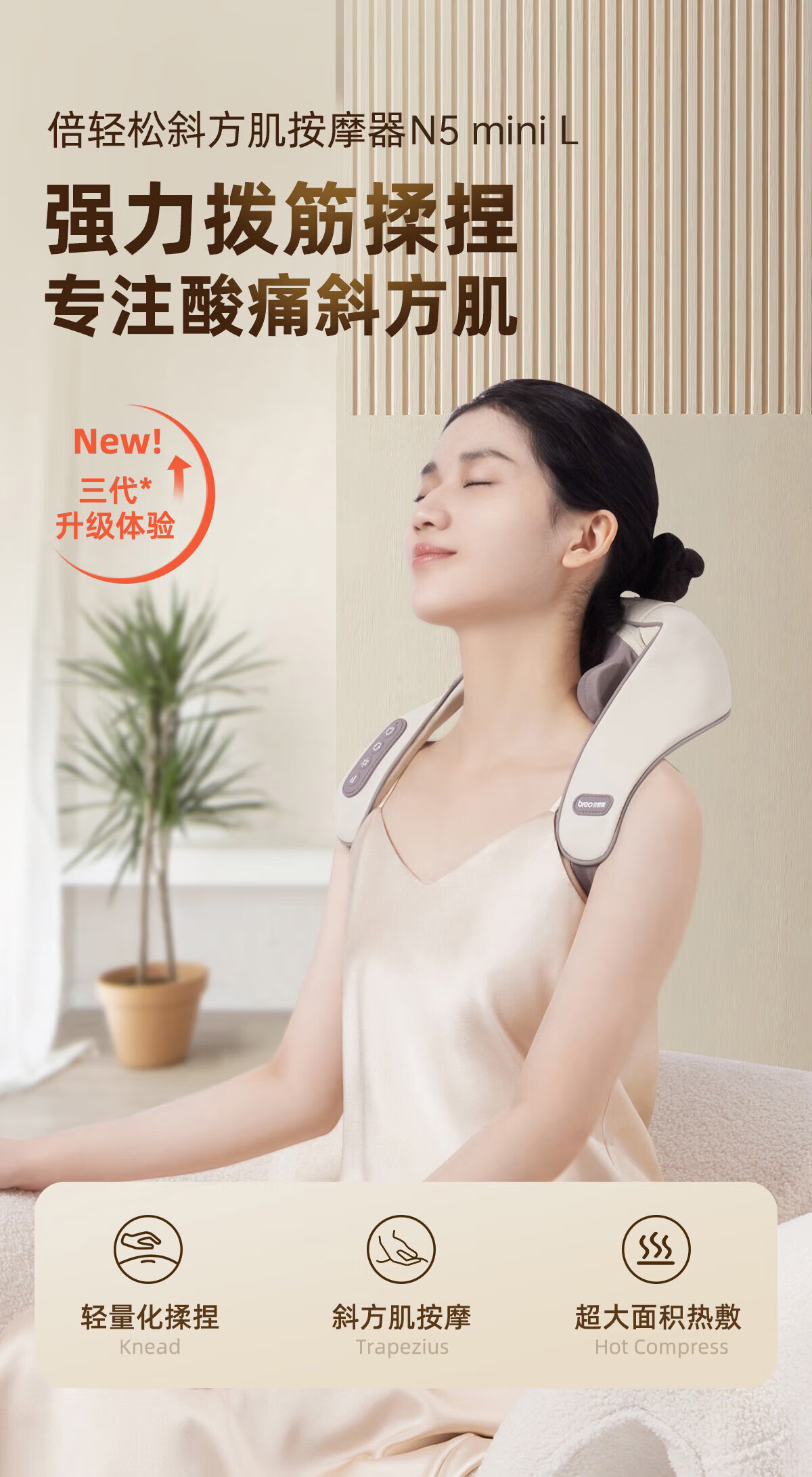 倍轻松(breo)N5miniL颈椎按摩器颈部按摩仪肩颈按摩器无线锂电家用按摩披肩 生日礼物 长辈礼物三八节女神礼物 送礼推荐-N5miniL